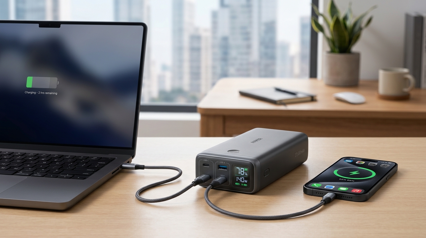Your laptop battery hits 5% during a video call. Your phone is at 12%. The…